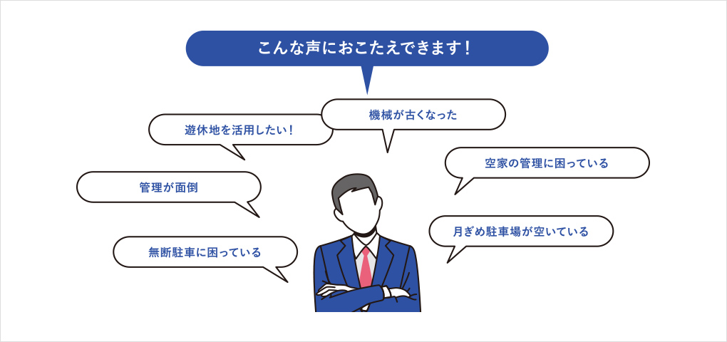 土地または駐車場施設をお借りし、地域に駐車場をご提供します。