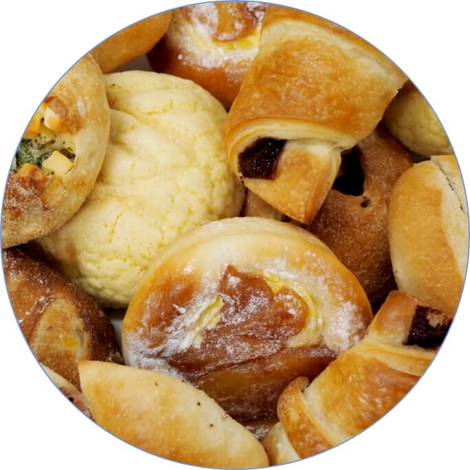 この製法により「焼き立てより美味しい冷凍パン」との評判のお声をいただいています。